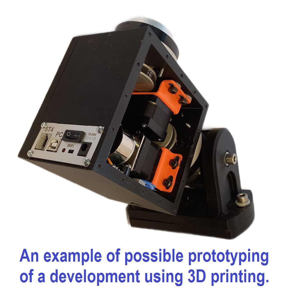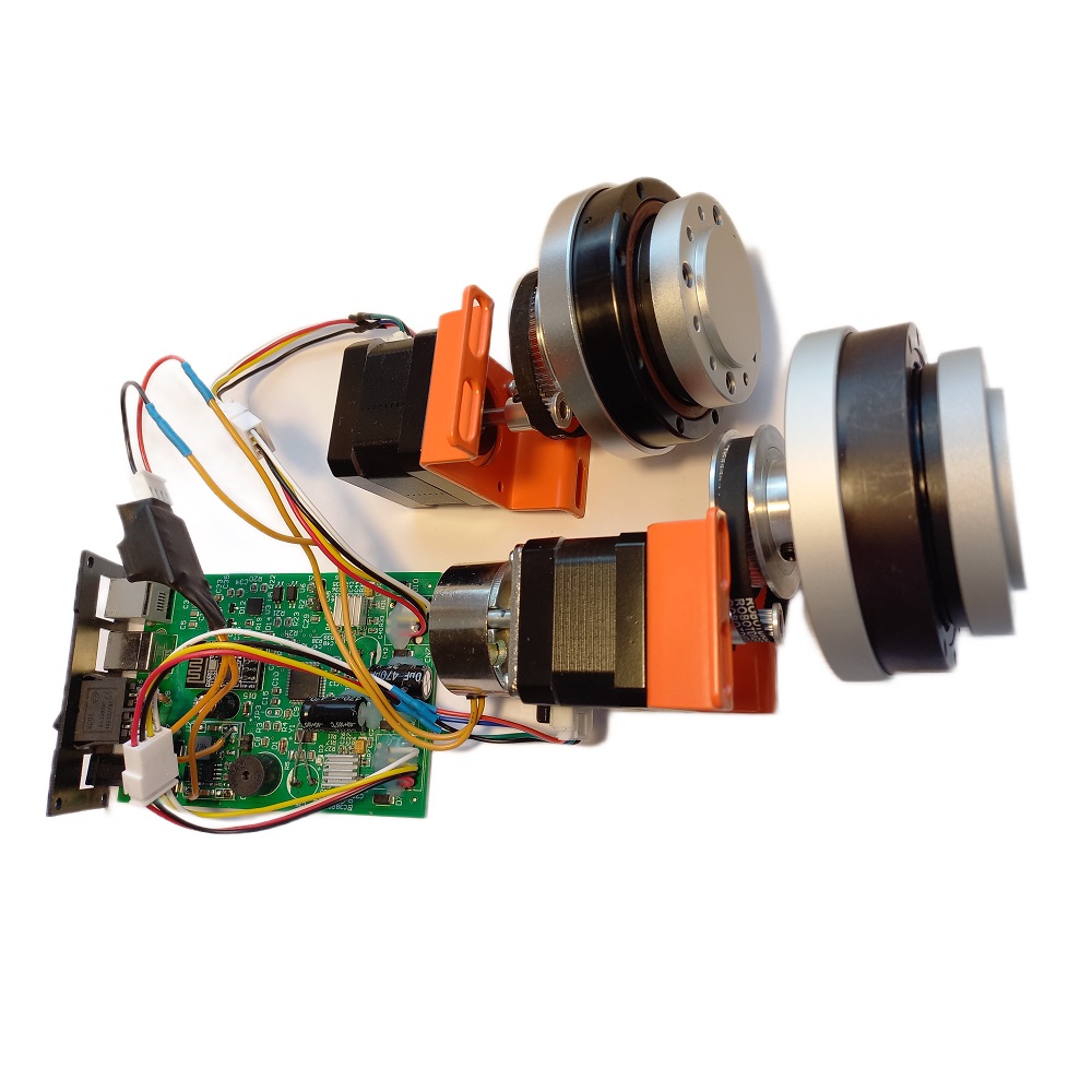 1) High positioning and tracking accuracy is achieved thanks to precision harmonic gearboxes. The periodic error of the drive is approximately ±10 arc seconds. Powerful harmonic gearboxes together with a belt gearbox provide a high gear ratio of 1:500, which ensures