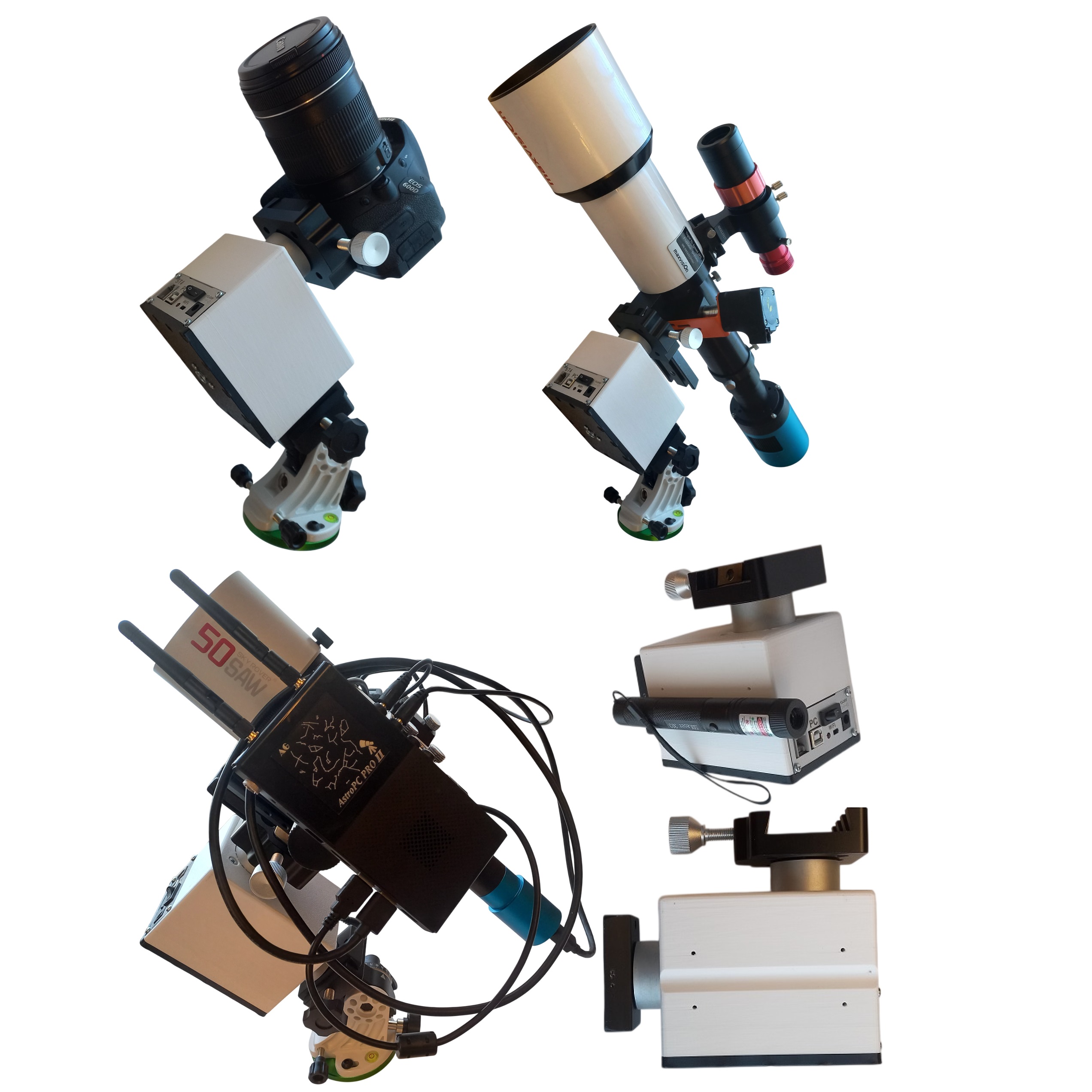 HarmoTrack is an EQ/AZ astronomical harmonic mount weighing only 1.6 kg without the latitude adjustment unit and can even be mounted on a photographic tripod. The EQStarPROII control system provides silent, smooth and precise control of the HarmoTrack mount both in standalone mode and using a computer or mobile device (phone, tablet, etc.).
